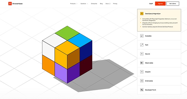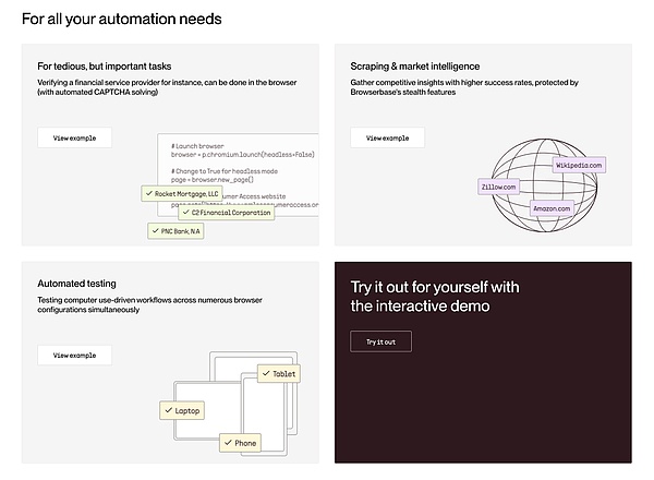 Browserbase提供的解決方案被稱為"無頭瀏覽器(headlessbrowser)"基礎設施。簡單來說,就是運行在云端的瀏覽器,它們沒有用戶界面,但可以執行所有瀏覽器的功能:訪問網頁、點擊按鈕、填寫表單、下載文件等等。關鍵是,這些瀏覽器可以被編程控制,可以大規模運行,而且專門針對AI和自動化場景進行了優化。