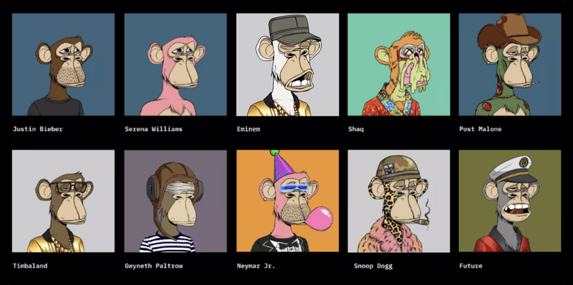 Bored Ape Yacht Club (BAYC) 最初是一個社區合作的藝術項目,旨在讓社區共同開發和發展一個概念。如今,BAYC 成為了 NFT 行業的一股巨大力量,其總估值已達數十億美元,持有者中不乏許多知名人士,包括 Snoop Dogg、Logan Paul 和 Justin Bieber。